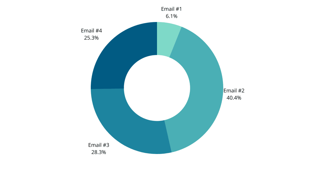 The email that generated the most revenue was the Early access (#2) email: 40% of the total revenue generated was through this step of the campaign, outlining the benefit of creating and marketing directly to engaged segments.